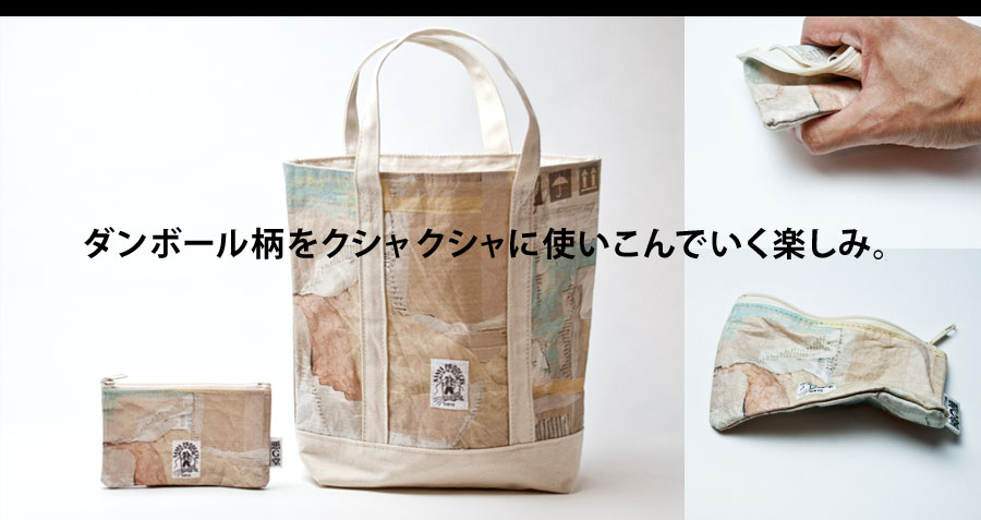 段ボール柄のプリントは80%植物由来成分の環境対応型インクを使用しています。