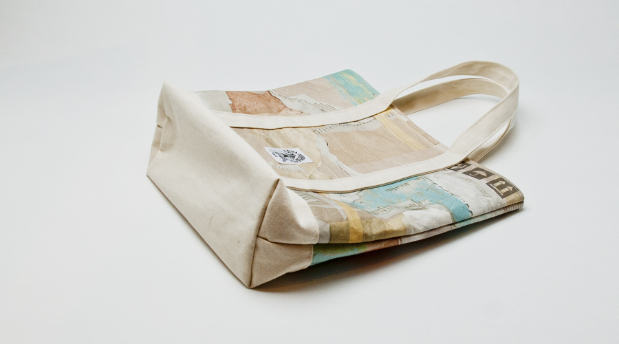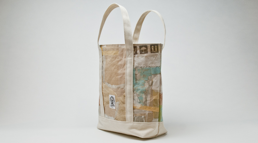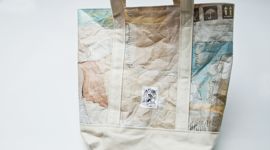 「ナオロン」を使用し、それにダンボールコラージュをプリント。